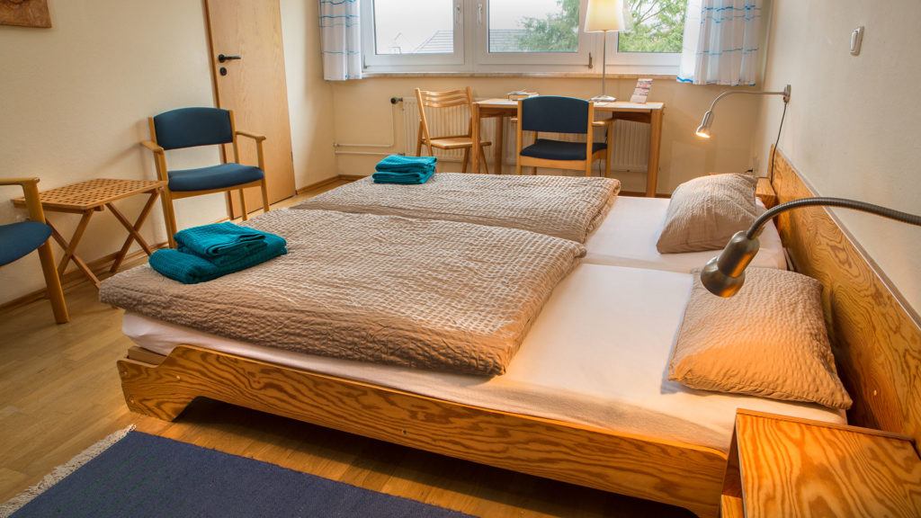 2 Doppelzimmer ohne Dusche/WC im Erdgeschoß – barrierefrei; Gemeinschaftsdusche/WC auf dem Flur